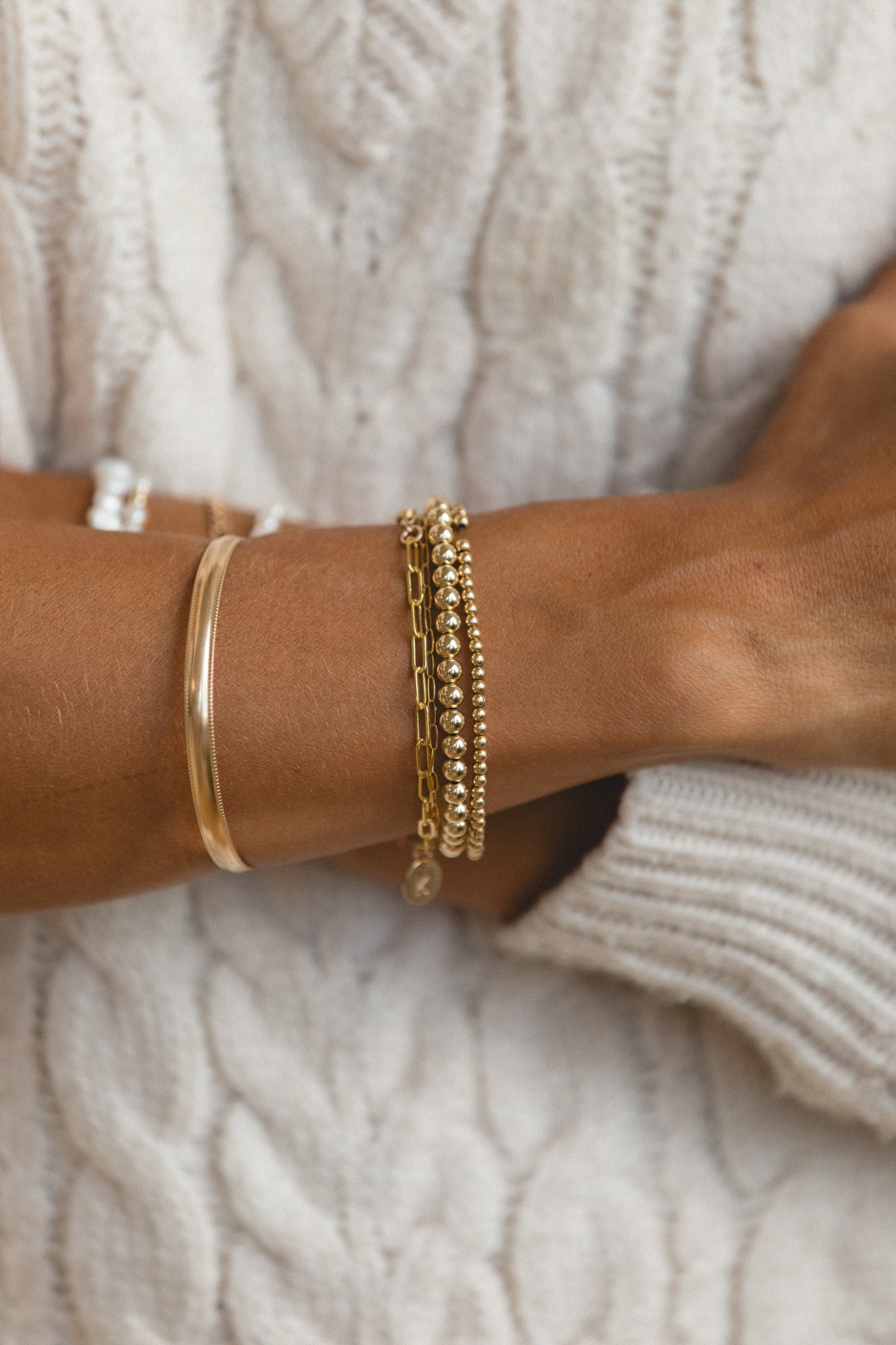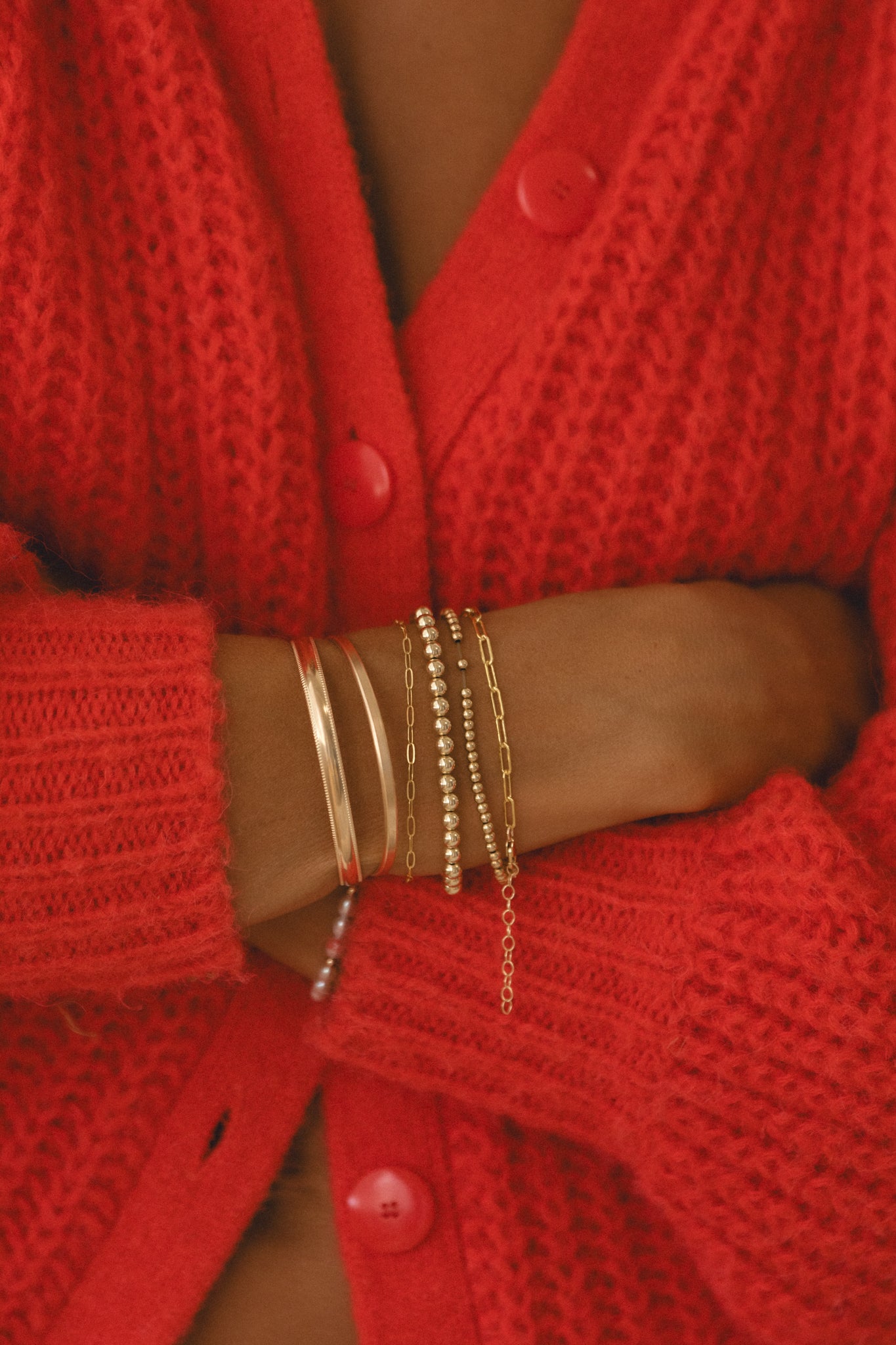 Our Ribbed Collection is complete with this bright and bold cuff. Equally sleek and comfy, this classic design and unique finish will quickly become a staple in your collection. Bold enough to be worn alone, yet versatile enough to style with other pieces in your collection.