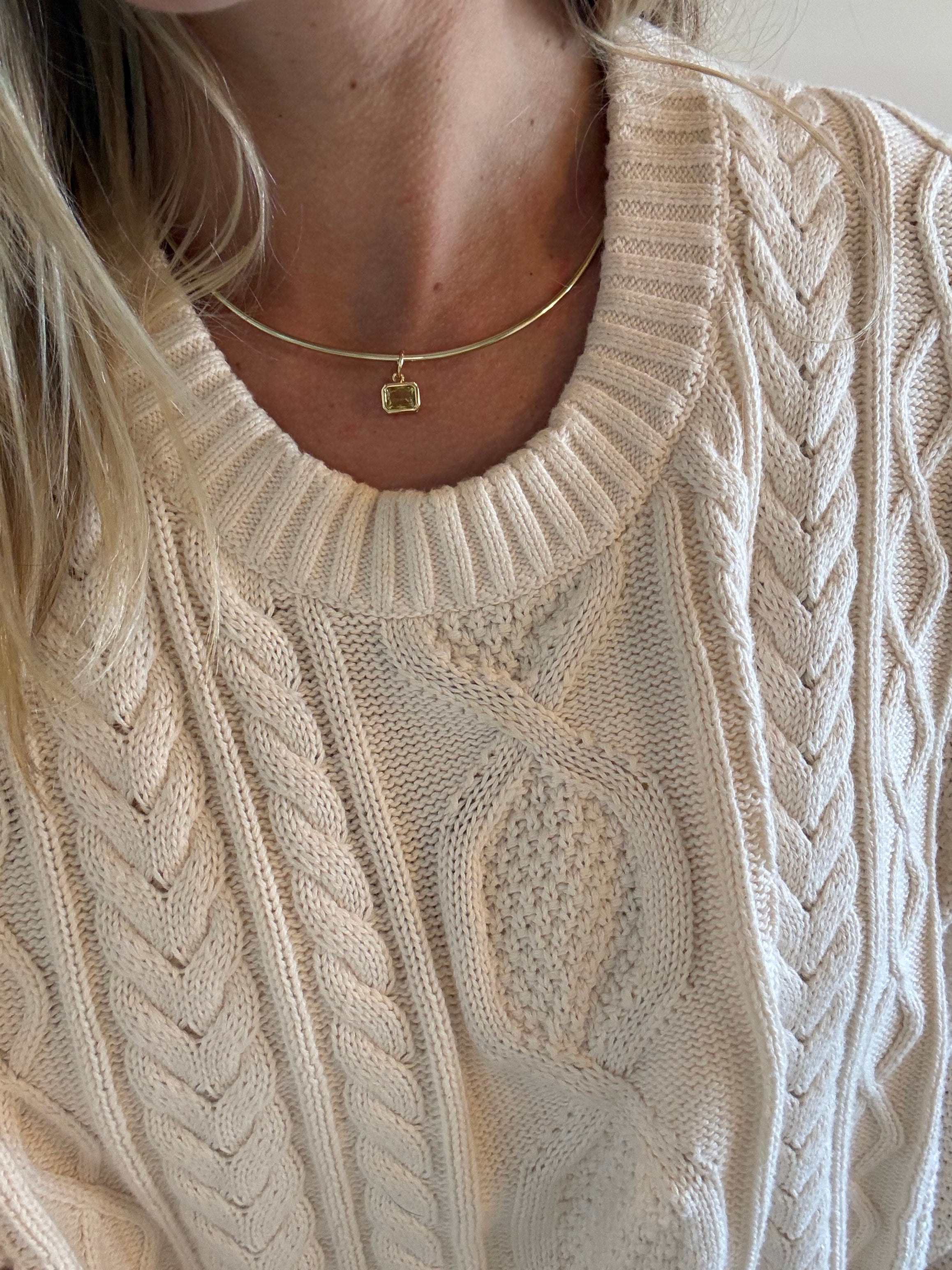 Brass Neck Ring with Green Gemstone.. Adjustable.