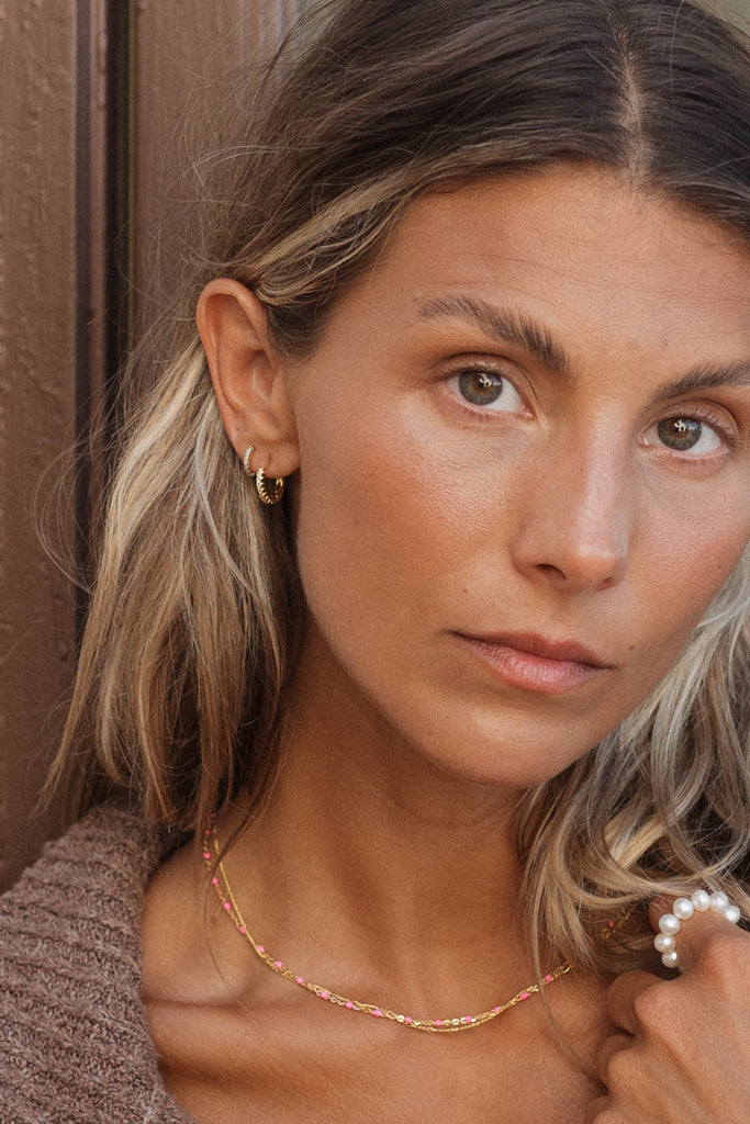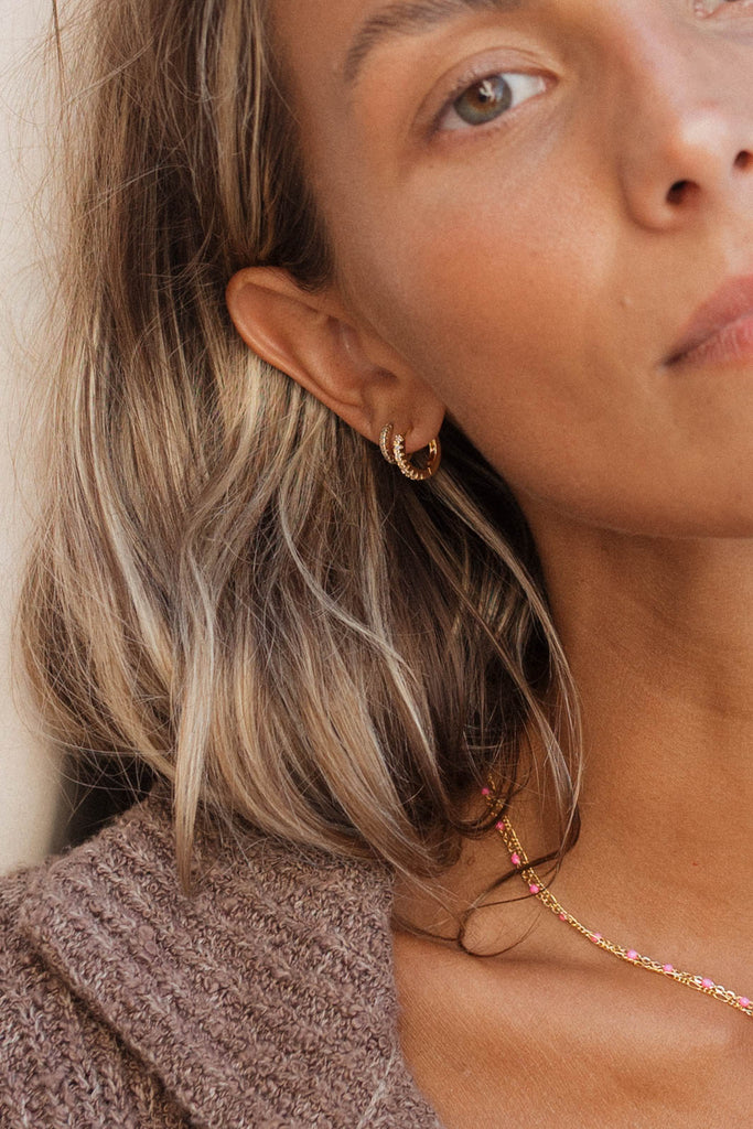A bold take on timeless sparkle, the Rhinestone Hoops elevate everyday shine. Crafted from 14k gold-filled metal and lined with radiant cubic zirconia, they strike the perfect balance between statement and sophistication. A luminous addition to the Dusk Collection—made to glow from golden hour to night out.