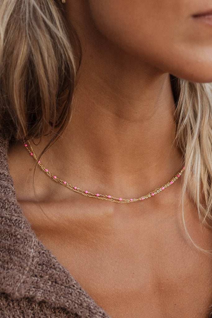 Add a pop of color with timeless shine. This necklace features a delicate gold chain adorned with vibrant enamel accents, blending modern artistry with classic elegance. Lightweight and versatile, it’s perfect for layering or wearing solo as a statement of everyday joy.