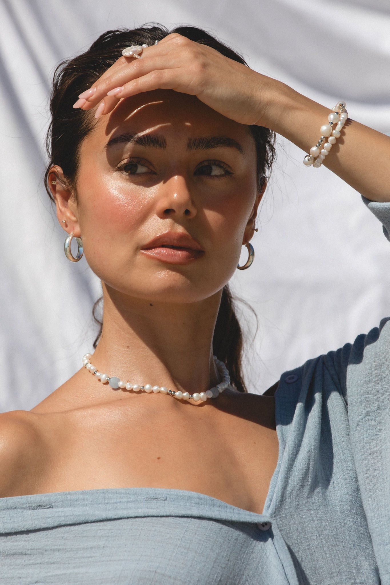 Capture the essence of coastal living with this elegant pearl bracelet. Featuring pearls and sterling silver beads in a timeless design, it adjusts from 5-6.5 inches with a convenient extender for the perfect fit.