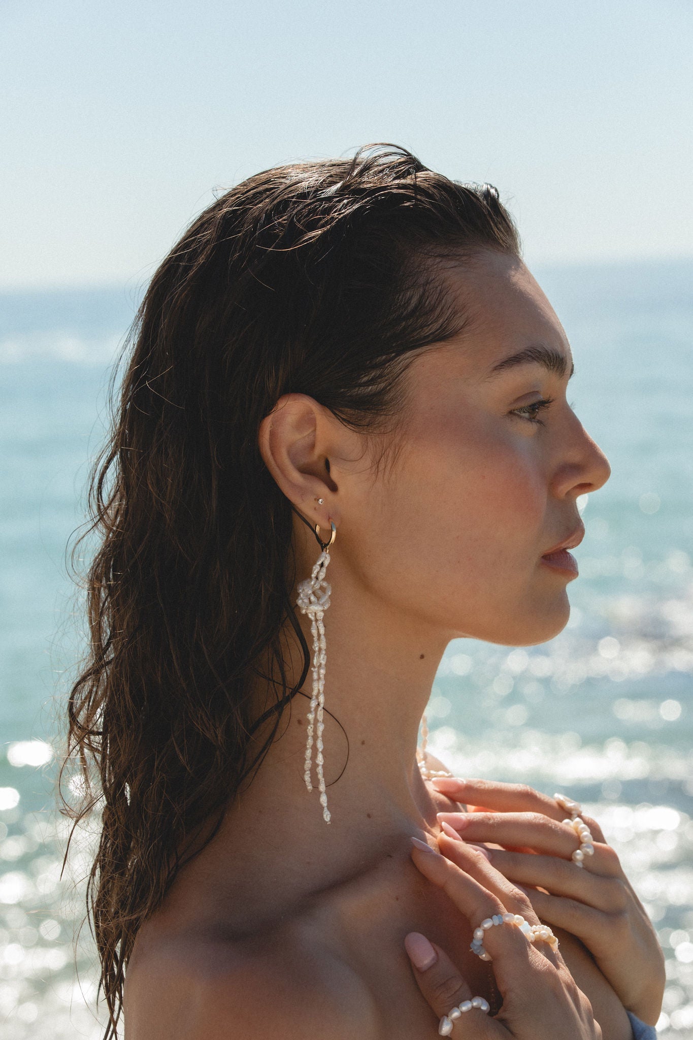 Elegant pearl drop earrings featuring cascading mini pearls that catch the light beautifully. Each pair is handcrafted with care in San Clemente, CA, combining timeless sophistication with artisanal quality. The delicate pearl design adds a touch of refined elegance to any occasion, from everyday wear to special events. Perfect for those who appreciate classic jewelry with a modern sensibility.