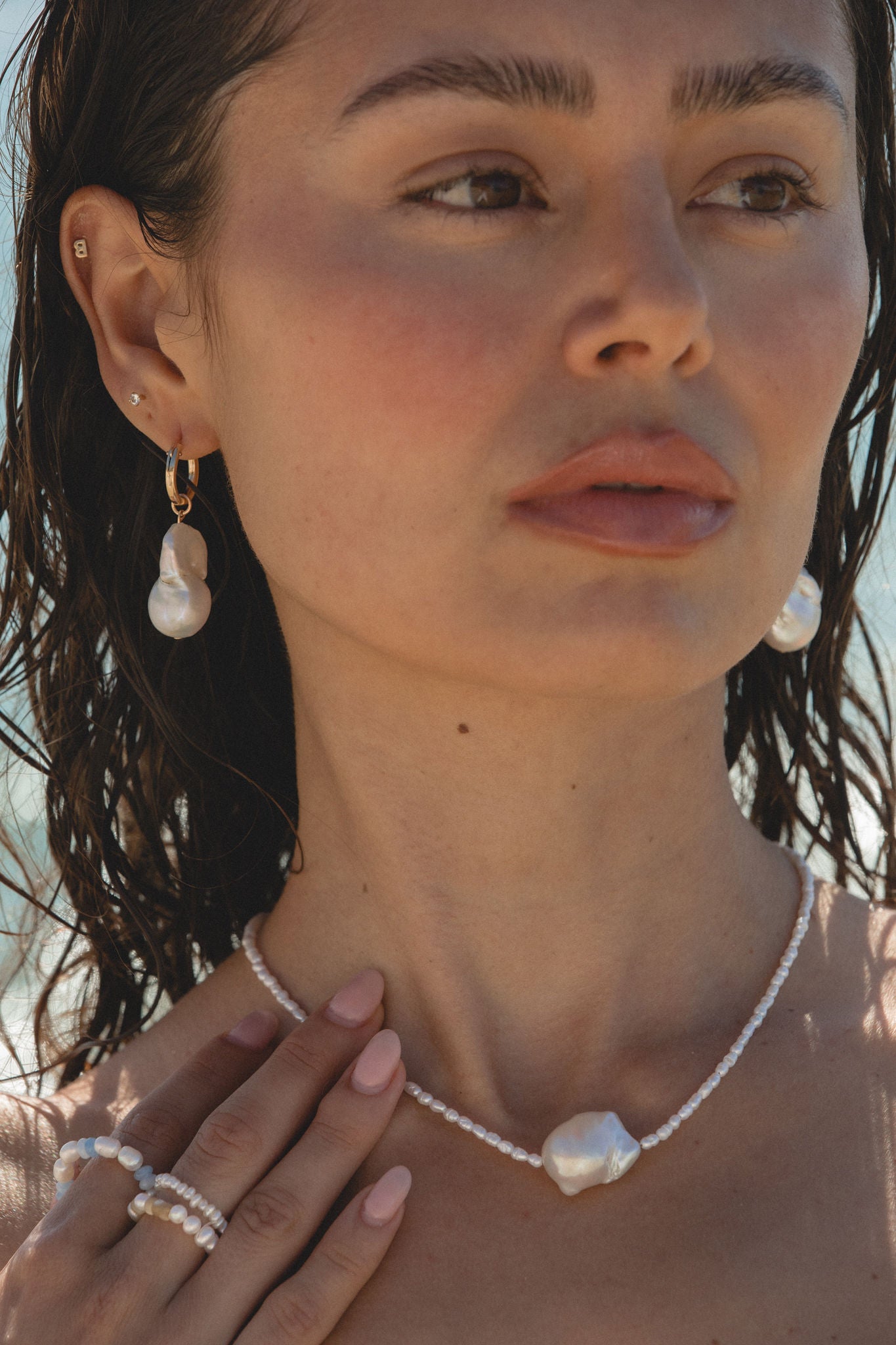 A strand of natural freshwater pearls with larger organic pearls at the center for soft texture and dimension. The Harbor Pearl Necklace feels relaxed yet refined, making it an easy piece to wear on its own or layered.