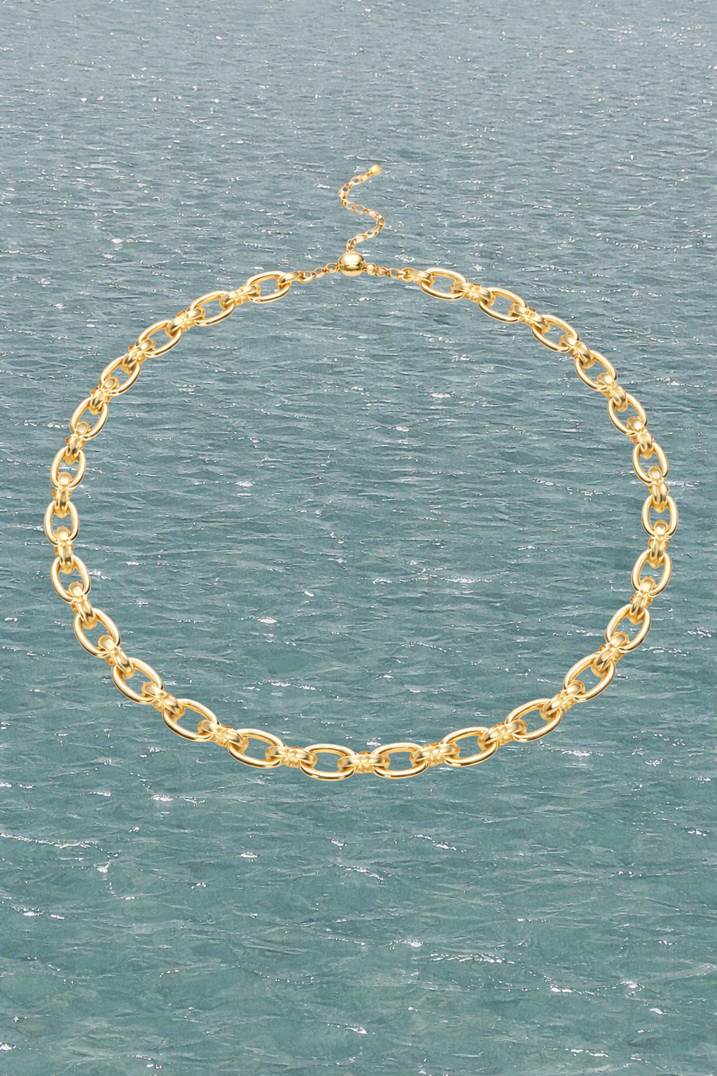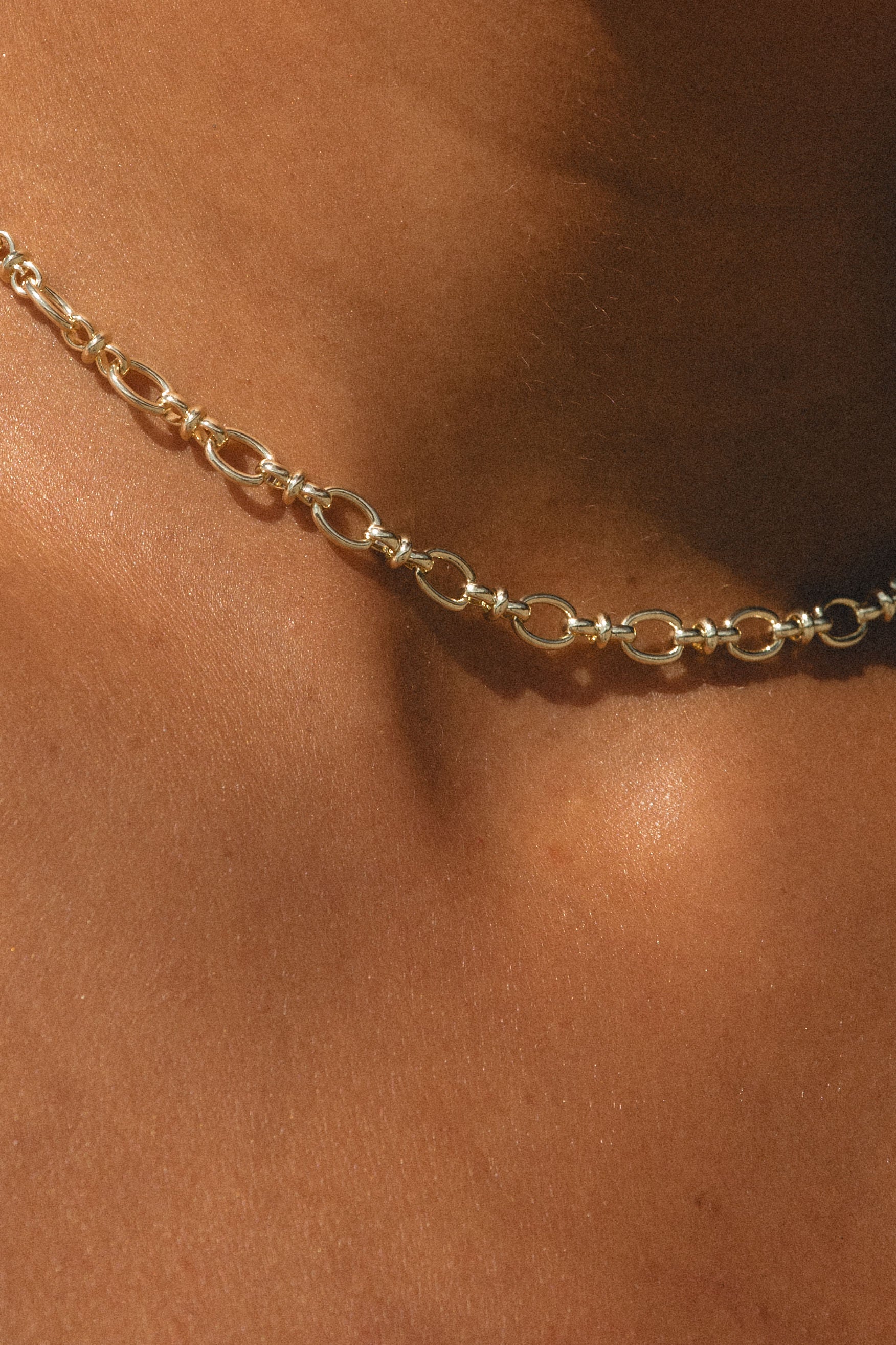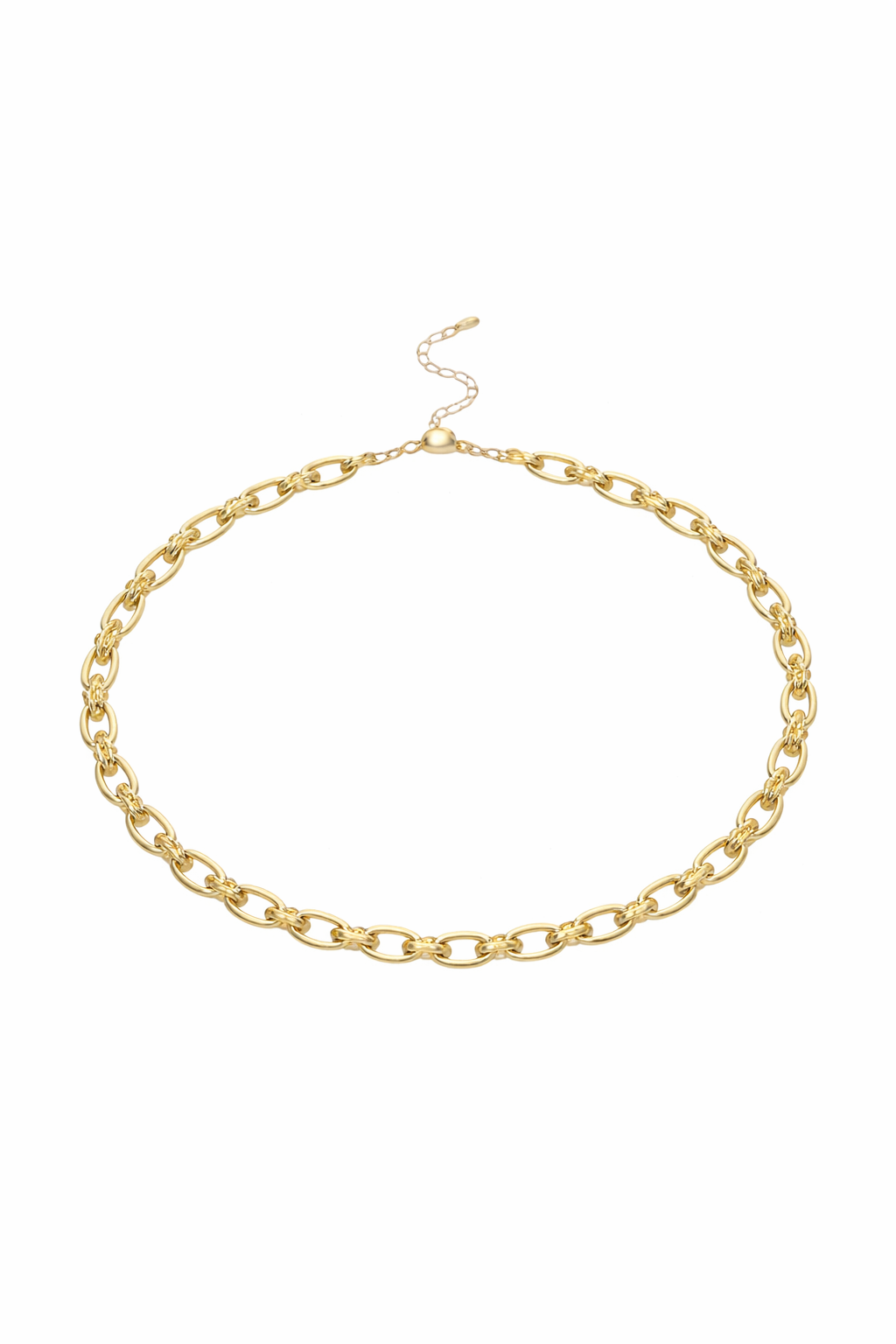 The Riviera Chain features geometric links and cable construction in a sophisticated design made to layer or wear solo. This 18 inch chain includes a 2-inch extender, offering versatile styling options for any occasion. Perfect for layering or wearing solo, the Riviera Chain combines timeless elegance with quality craftsmanship.