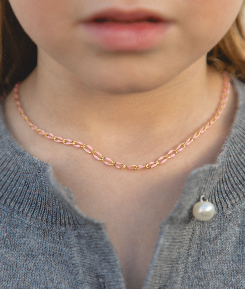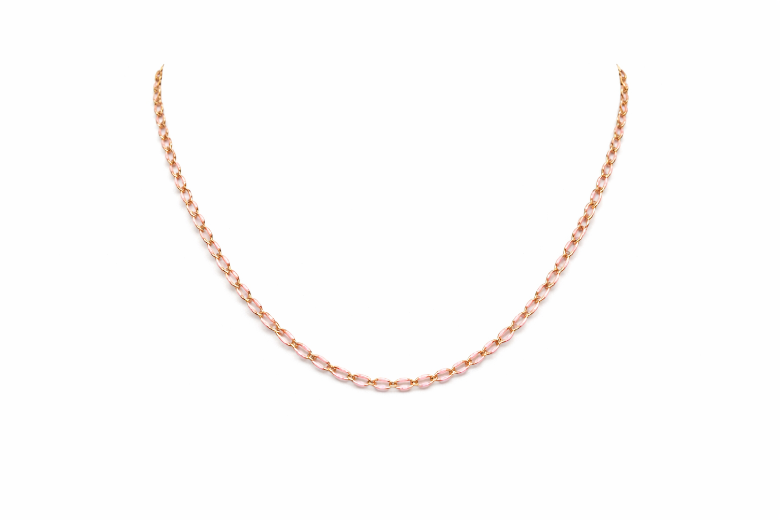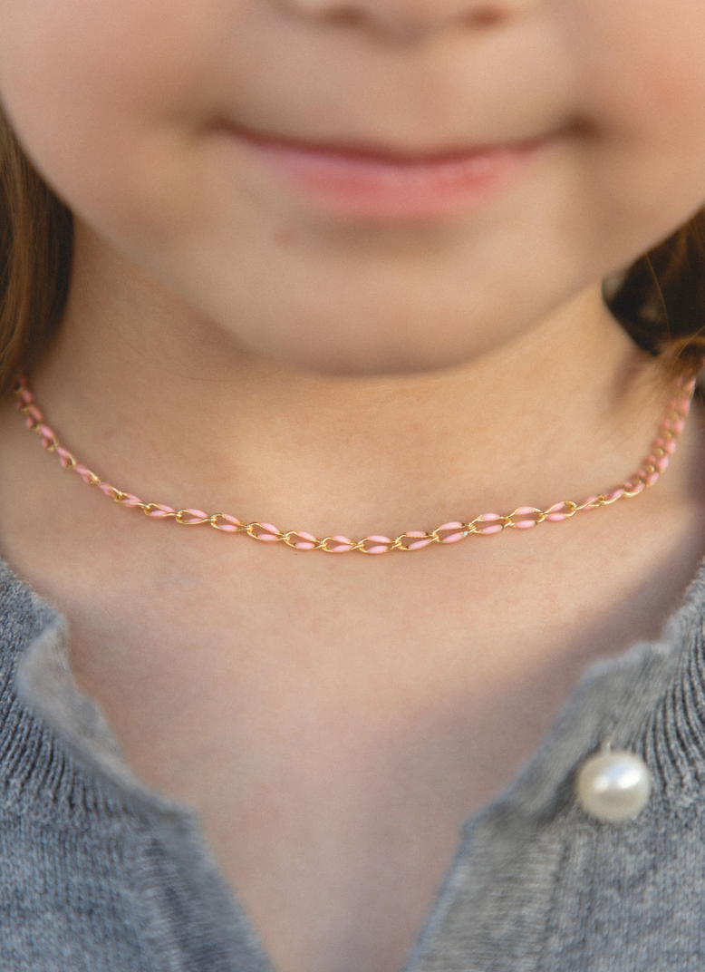 Bright and bold, this light pink enamel chain adds a playful pop to your summer stack. Crafted with links and coated in a glossy light pink enamel, it’s equal parts sweet and statement. Adjustable from 11-13", it layers beautifully or shines all on its own.