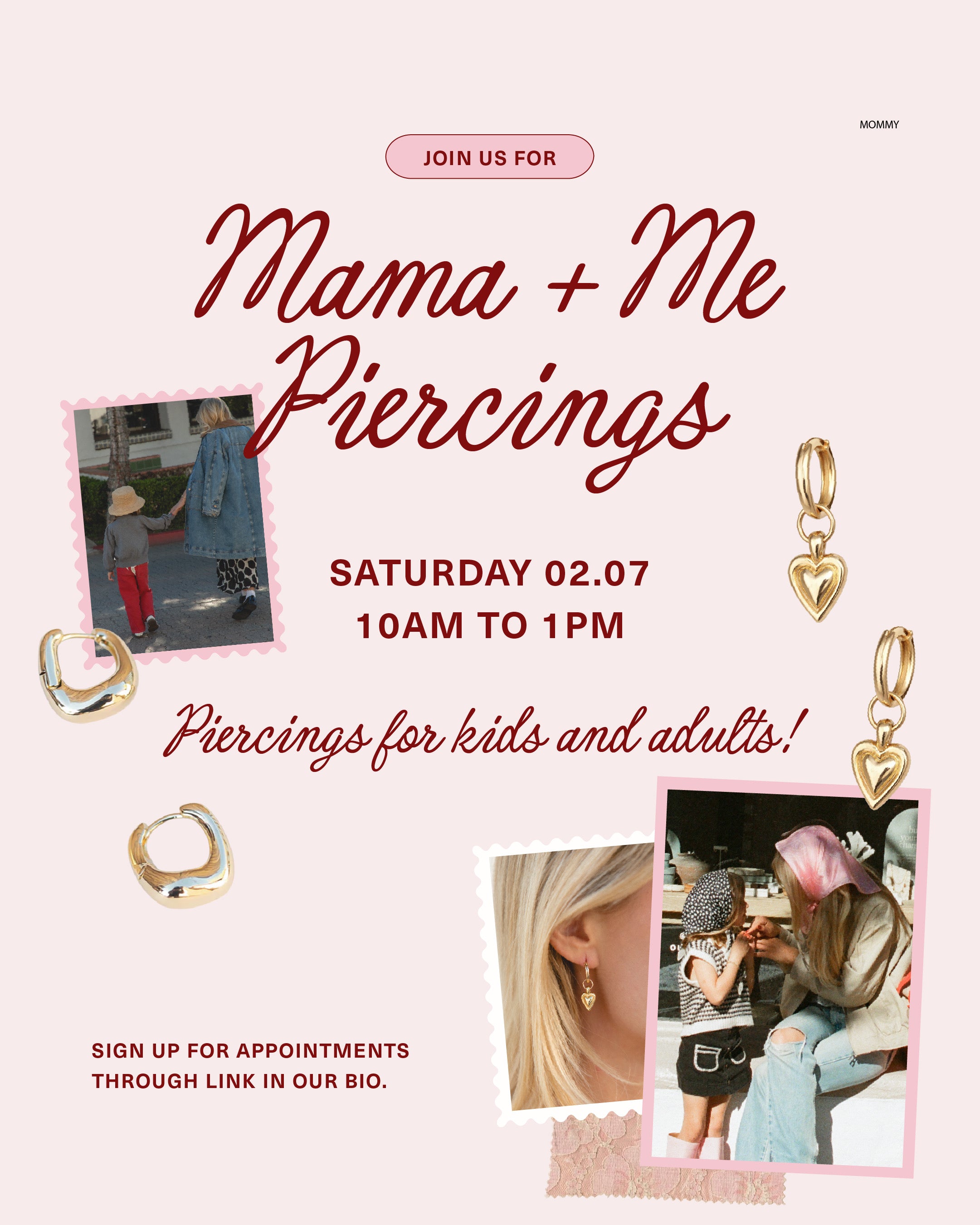 Join us, Saturday 2/7 from 10 AM - 1 PM for a Mama + Me Piercing Event!